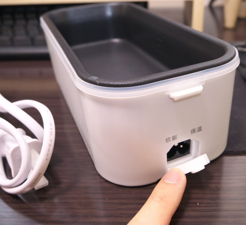 内釜とプラ製の本体の間のパッキンとコンセント接続部の蓋以外は取り外し分解可能なので、そのパッキン部分さえ気を付ければ衛生面も問題ないでしょう。このパッキン部分とコンセント接続部の蓋のおかげで防水の弁当箱として機能するのだが、コンセント部分の蓋は割と開きやすいので洗う際には十分注意しよう。